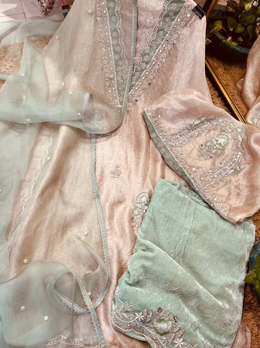 ATHARVA HERITAGE Pure Handloom Tissue Silk Suit with Velevt Applique Pakistani Suit~✨🌼 TVO001M