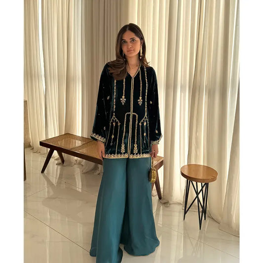 Atharva Heritage 100% Pure Silk Velvet Hand-Embroidered Jacket-Style Pakistani Corset Set | Custom Tailored (S–9XL) PKCSV167