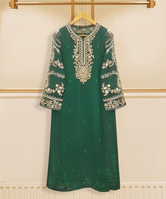 Pure Chiffon 80 Grams Ready to Wear Pakistani Suit CHI0015 Emerald Green