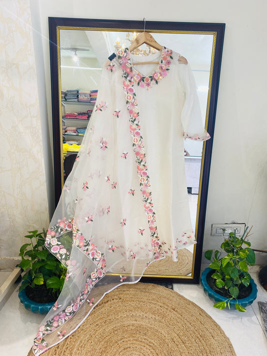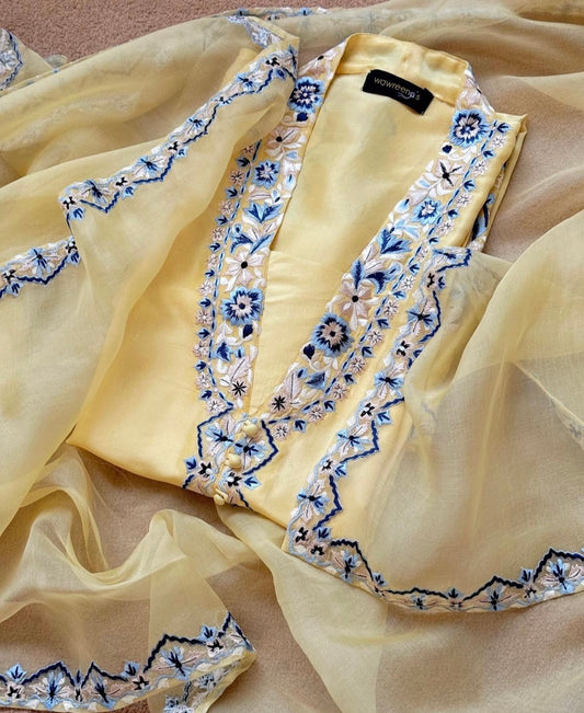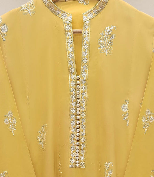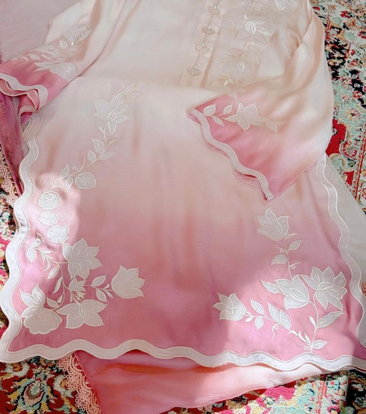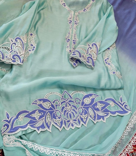 Enchanting Elegance: Pure chanderi Silk Pakistani kurta n pants Adorned with Exquisite Applique Embroidery MS009