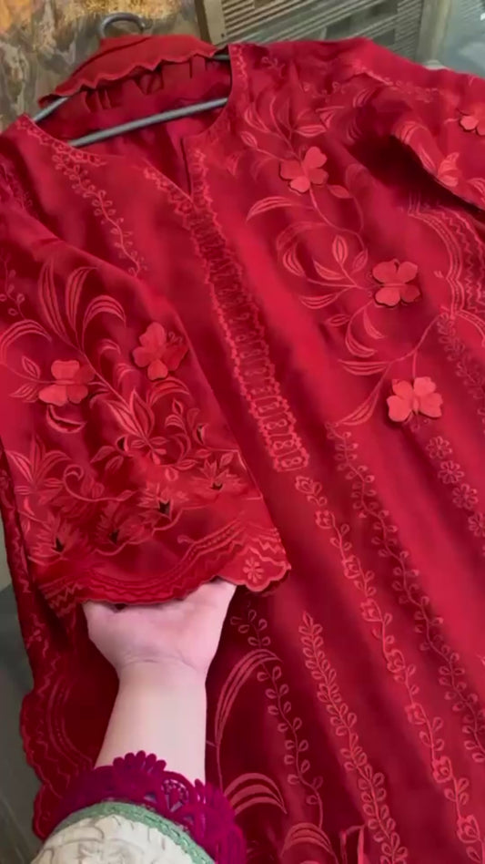 Atharva Heritage “Stunning Pure Silk Organza Pakistani Suit with French Thread Embroidery, Silk Organza Dupatta & Pure Crepe Pants