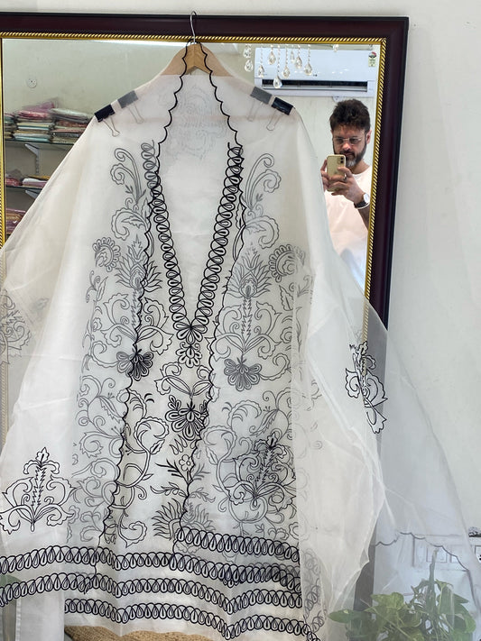 Enchanting Elegance: Pure chanderi Silk Pakistani kurta n pants Adorned with Exquisite Applique Embroidery MS009