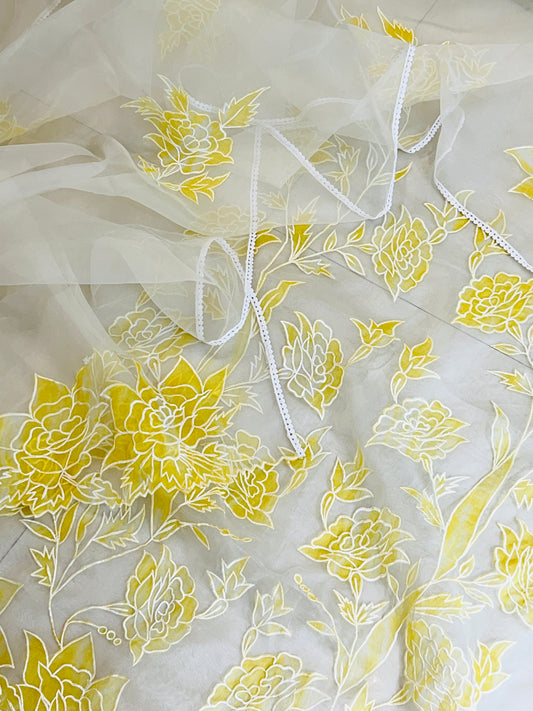 SHEER LUXURY PURE SILK ORGANZA OMBRÉ APPLIQUE SUIT SHEER001C
