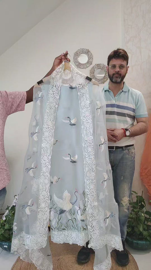 Sheer Luxury Pure Silk Organza Pakistani Unstitched suit SLP0057