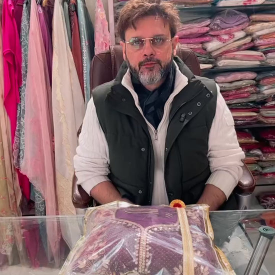 • Shirt Chanderi Silk - Plum - 2.5 Mts Hand Embroidered Neck/ Gota Patti