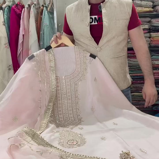 Excusive Hand Embroidered Party Wear Punjabi Suit.