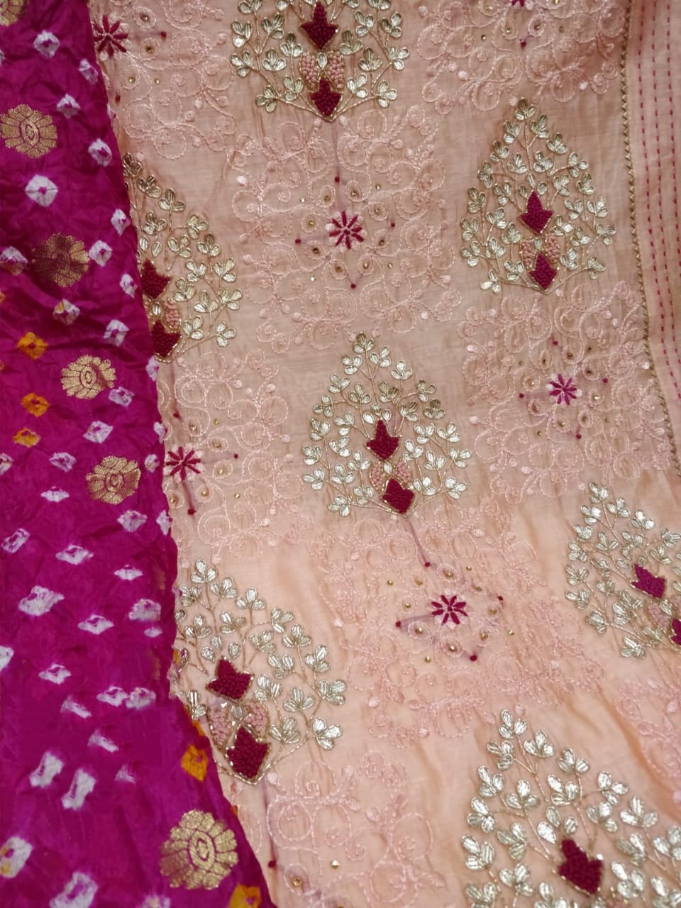 • Dupatta: Bandhani Silk Dupatta- 2.5 Mts- Latkans Tassels-(Motifs may wary)