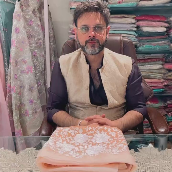 A pure satin silk Organza 80 Grams ombre dyed kurta adorned with intricate Parsi embroidery paired with a pure silk organza dupatta and crepe stitched pants sounds like a perfect combination for a sophisticated Pakistani suit. The customizable lengths offer flexibility to ensure the perfect fit for any preference. It’s definitely a statement piece for any occasion.