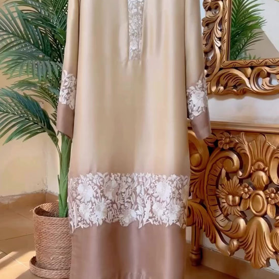 Discover timeless elegance with our premium Pure Silk 80g Pakistani Suit, exquisitely crafted in a luxurious beige-to-brown ombré finish. This hot-selling design features intricate hand Farsi Gara embroidery on the ghera, sleeves, and yoke — a true celebration of craftsmanship.