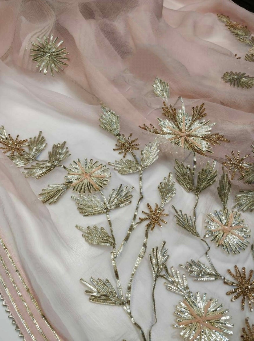 • Dupatta: Chiffon Chinnon Dupatta/GOTA BORDER Stone all over/4 Side trims/ Latkan tassels