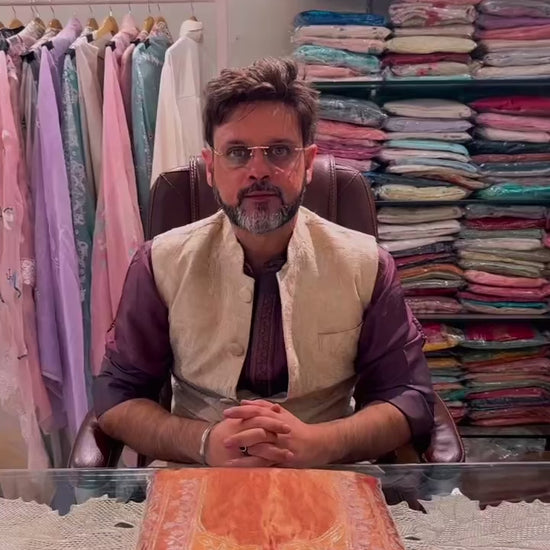 • Shirt: Pure Tissue Silk Shirt - 2.5 Mts- Tilla Embroidery Neck & Jaal