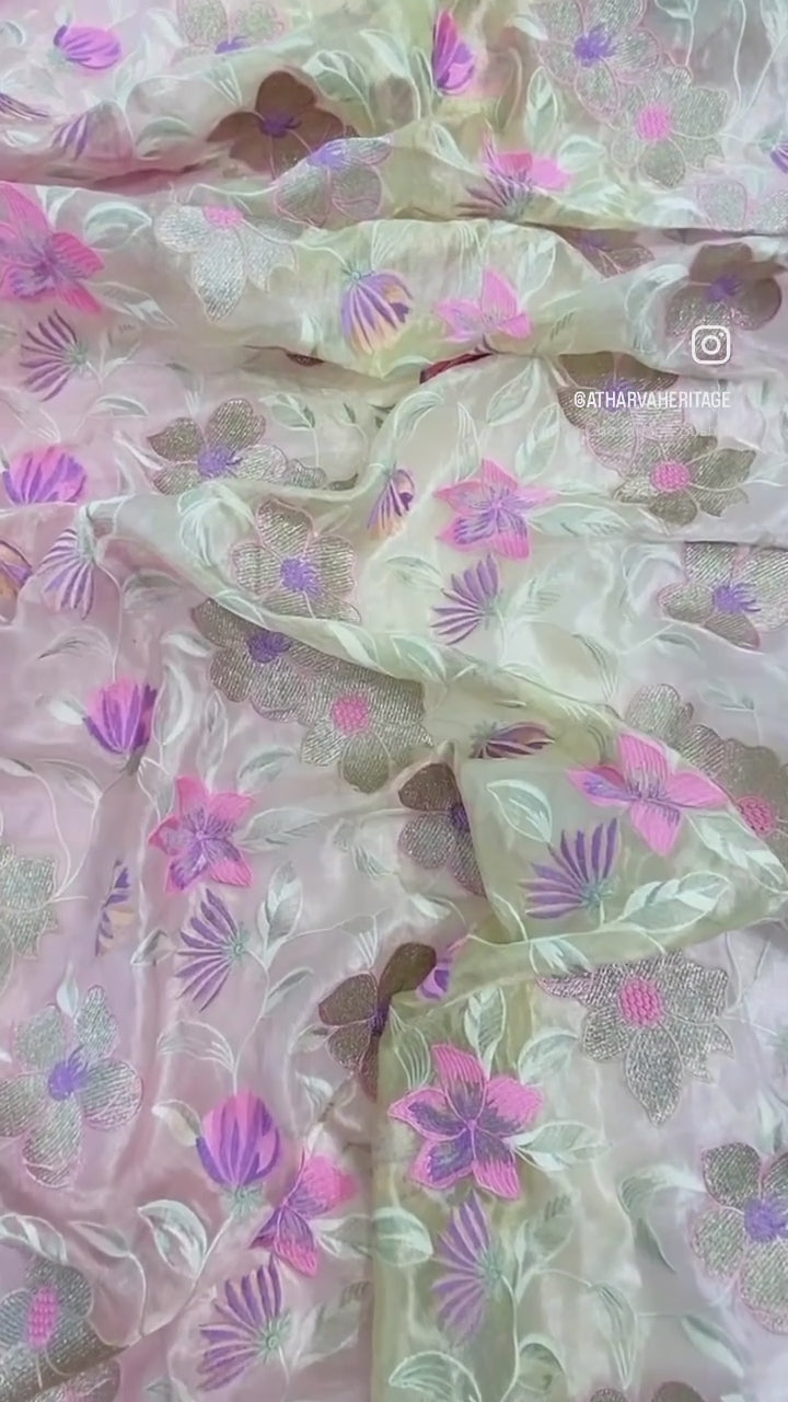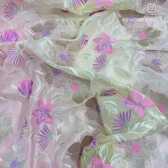 Atharva Heritage Ombre Handwoven Tissue Silk Saree with Exquisite Parsi & Applique Embroidery OHTSS512