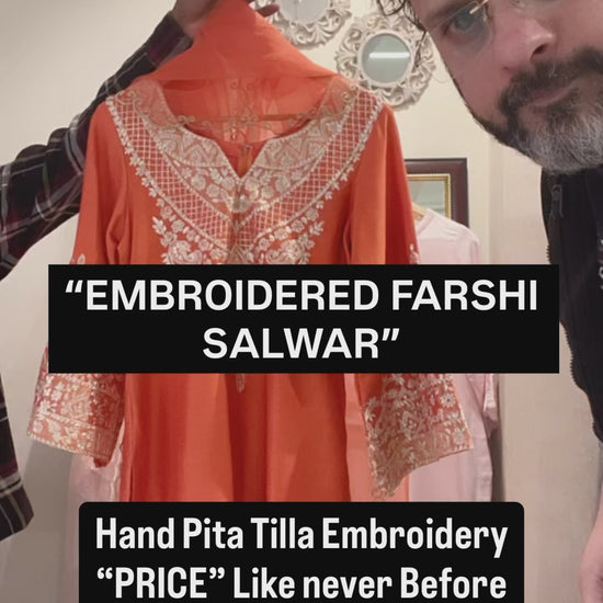 Inspired by the Calming Sound Of Pita And Patch work and unique architectural crafted on Purs Chanderi Silk 80 Grams , with Anarkali cut. The multicolored embroidery is a bold statement on the Hot Pink shirt and a tapered shalwar.