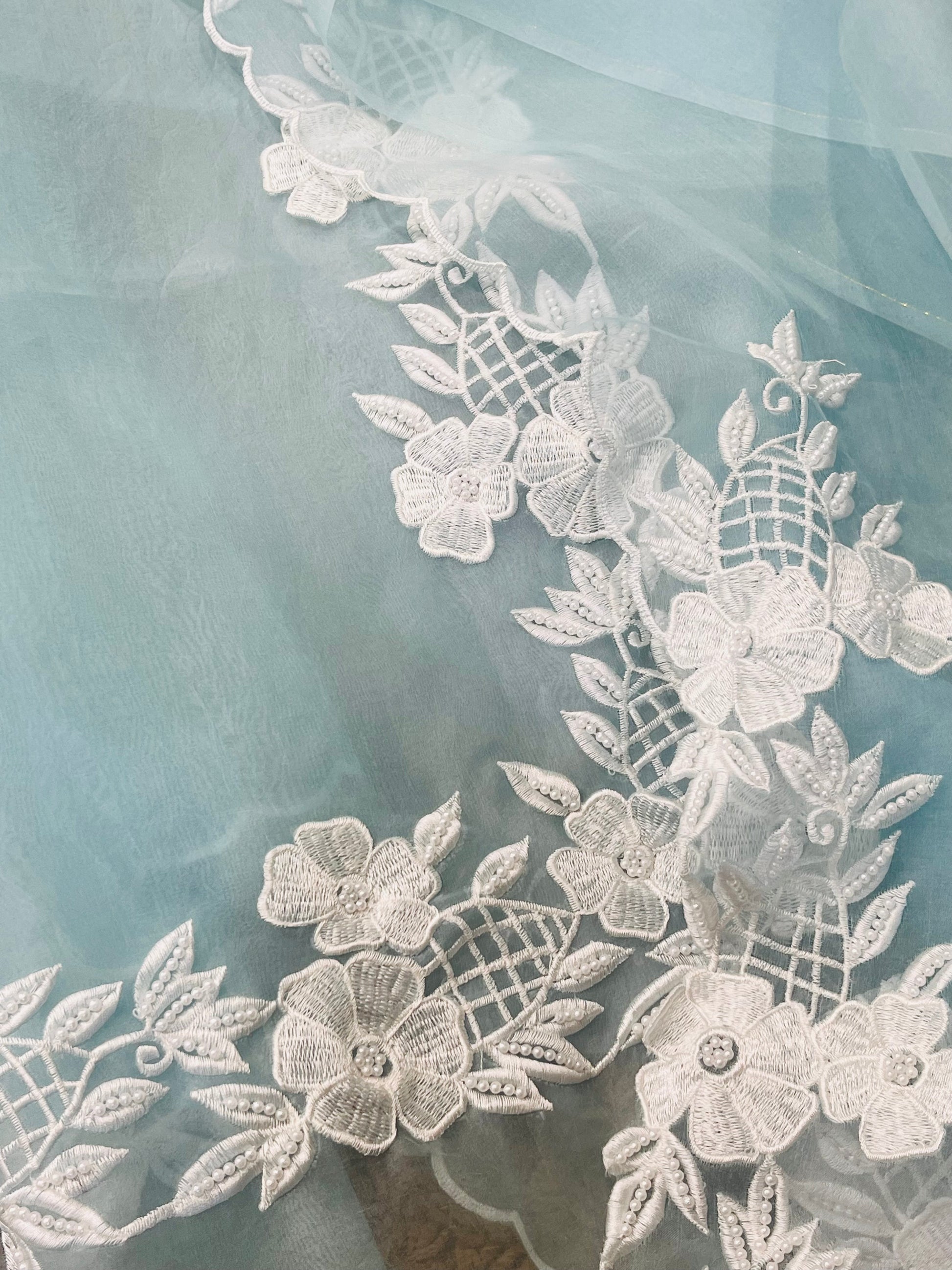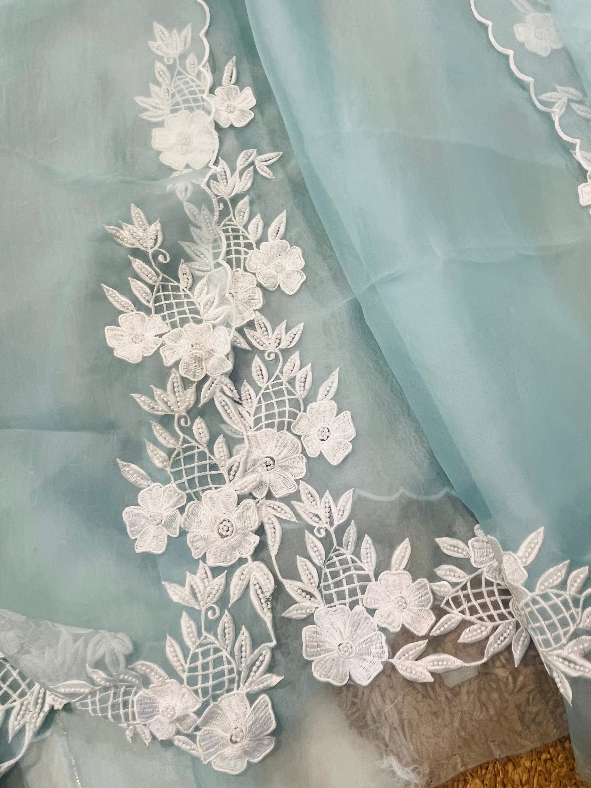Dupatta: Embroidered Organza with detailed corners