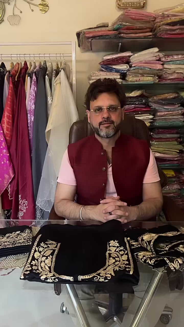 - Work: All-over Zari Embroidery & Hand Mukesh Kamdhani