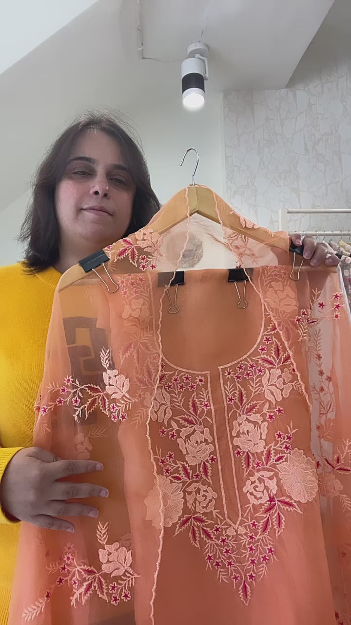 • Shirt: Pure SILK Organza Shirt - 2.5 Mts- French Thread EmbroideryÂ
