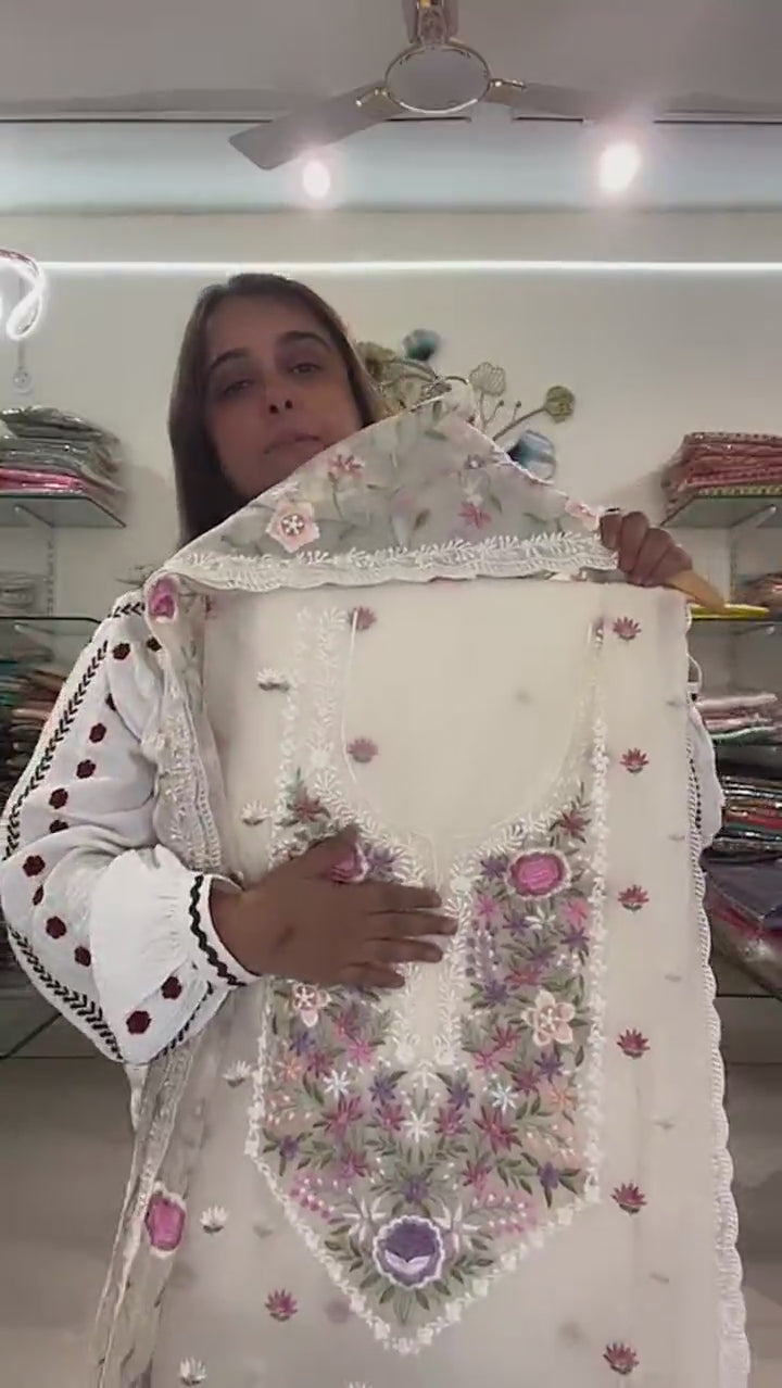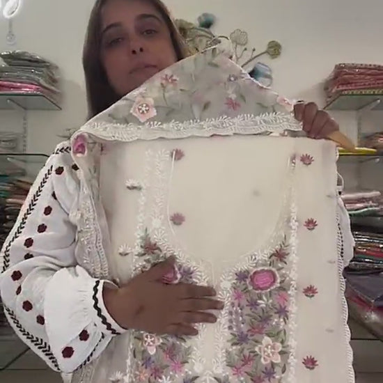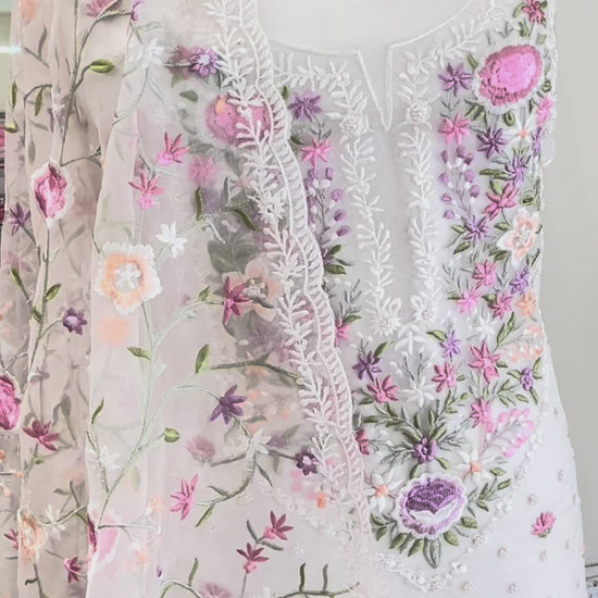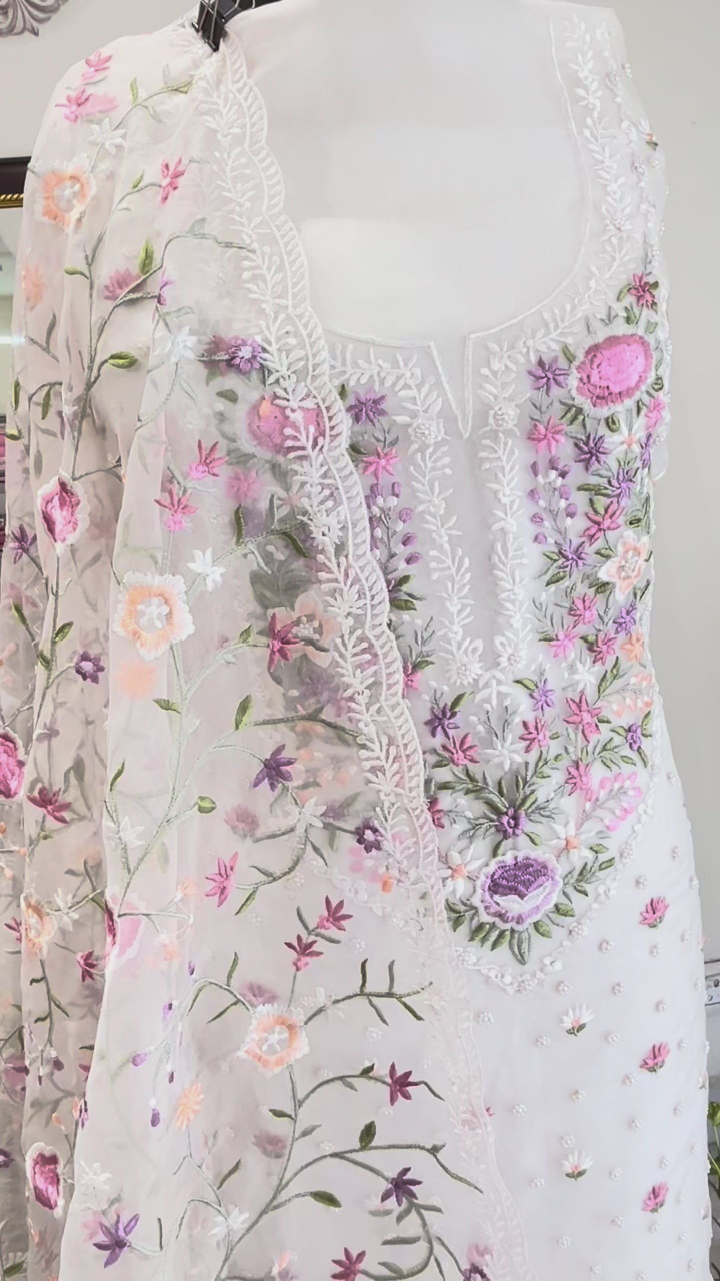 ATHARVA Hand Embroidery Salwar Kameez/Intricate Parsi Gara Embroidered Work/ Pure Organza silk Shirt Dupatta/Custom Stitch Unstitch/Plazzo/Pant/Gift