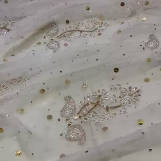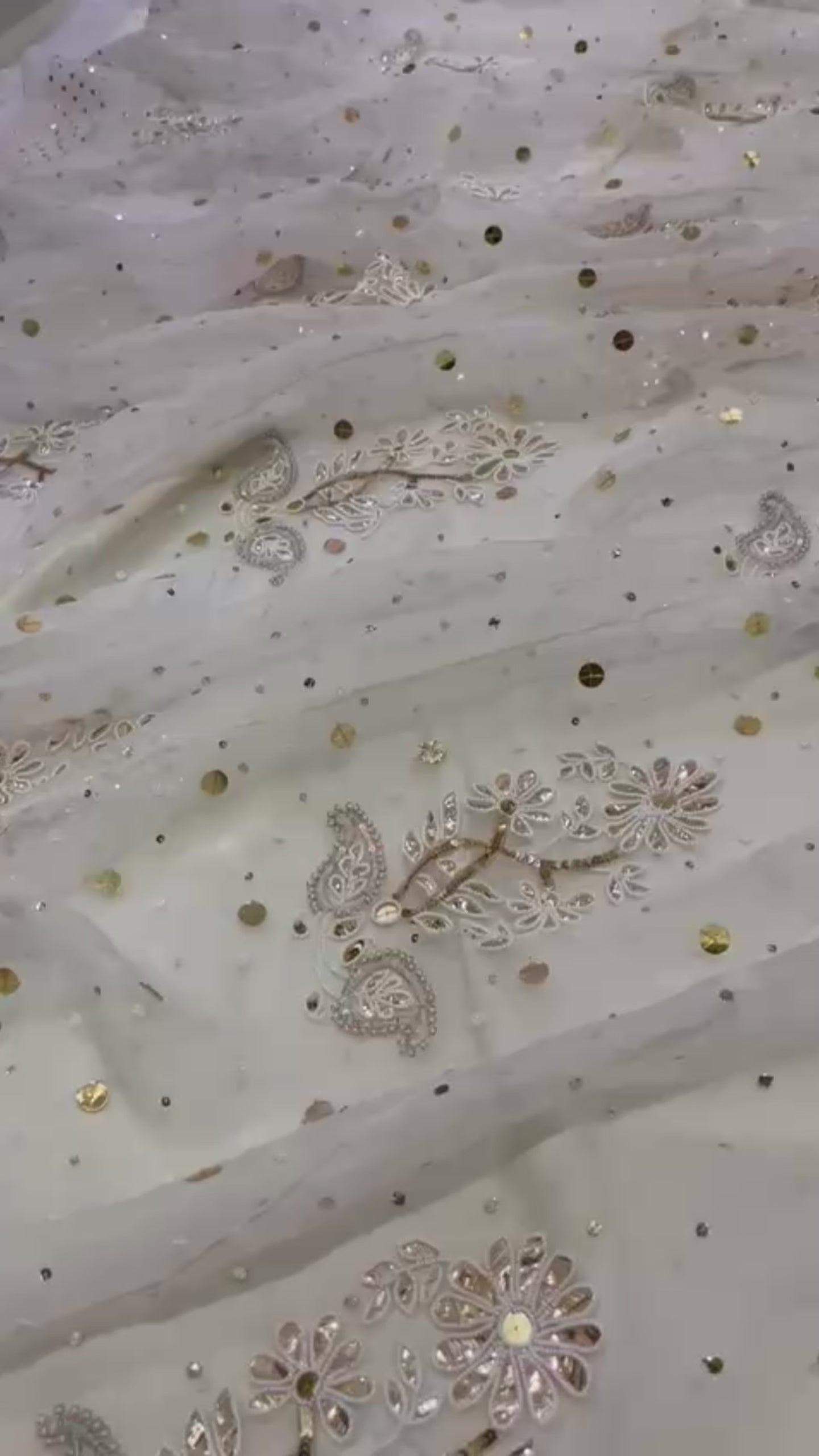 - Unstitched Lehenga: Pure silk organza with full Mukesh Kamdhani handwork (18 kalis)