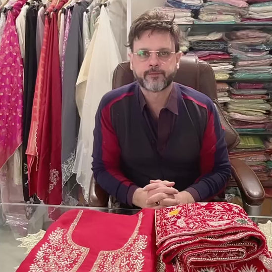 Atharva Heritage Red Chanderi Silk 70 Grams Hand Zardozi Pakistani Suit with Parsi Gara Jaal Pure Silk Velvet Dupatta PCHSV1678