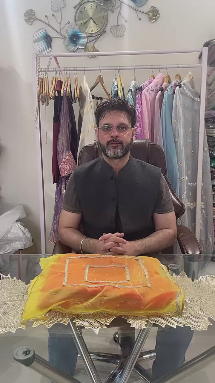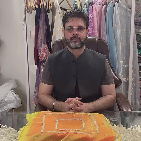 Organza on beautiful shade done with contrasting dual shade Chikankari embroidery and our signature ari & beads work.