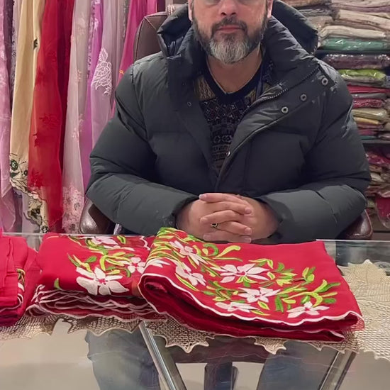 Atharva Heritage Rust Maroon Pure Silk Organza Parsi Gara Unstitched Suit Suit SOFGP698