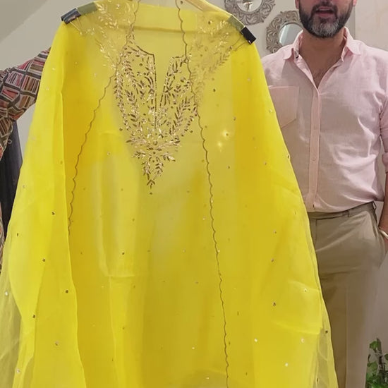 Atharva Heritage Sheer Luxury /DULHAN KINBEHAN KA HALDI KA JODA /Premium Lucknowi Collection Sheer00067 Yellow