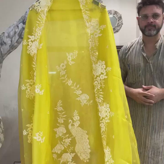 - Pure Silk Organza Dupatta with Shaded Embroidered Borders & Four-Side Scalloping