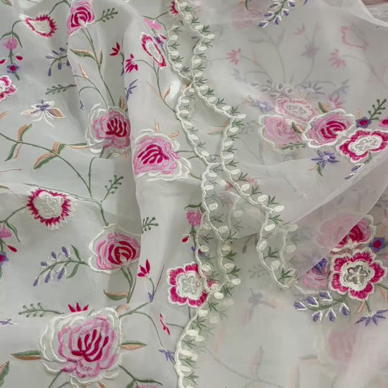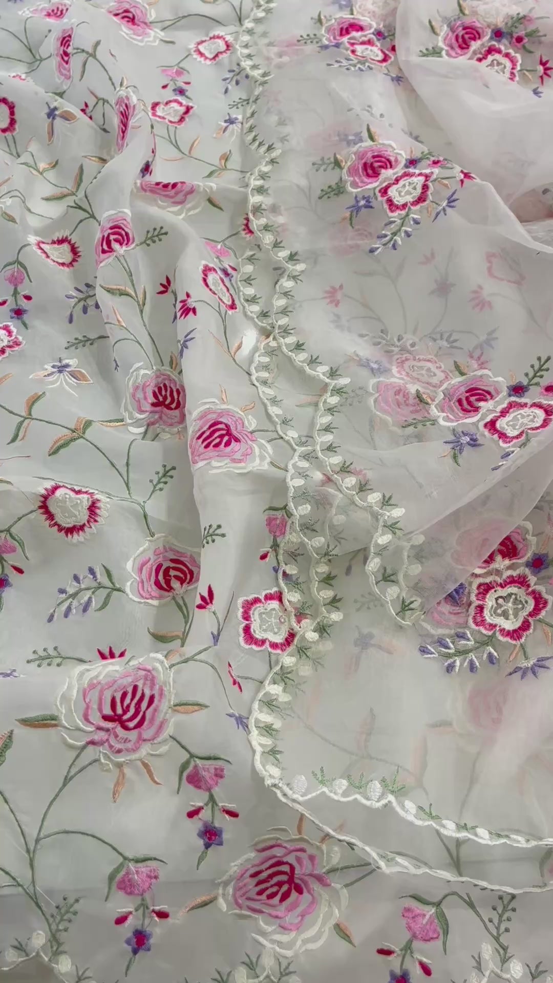 • Dupatta: Pure SILK Organza Dupatta/All Over Parsi Gara embroidered Jaal/ 2.5Mts