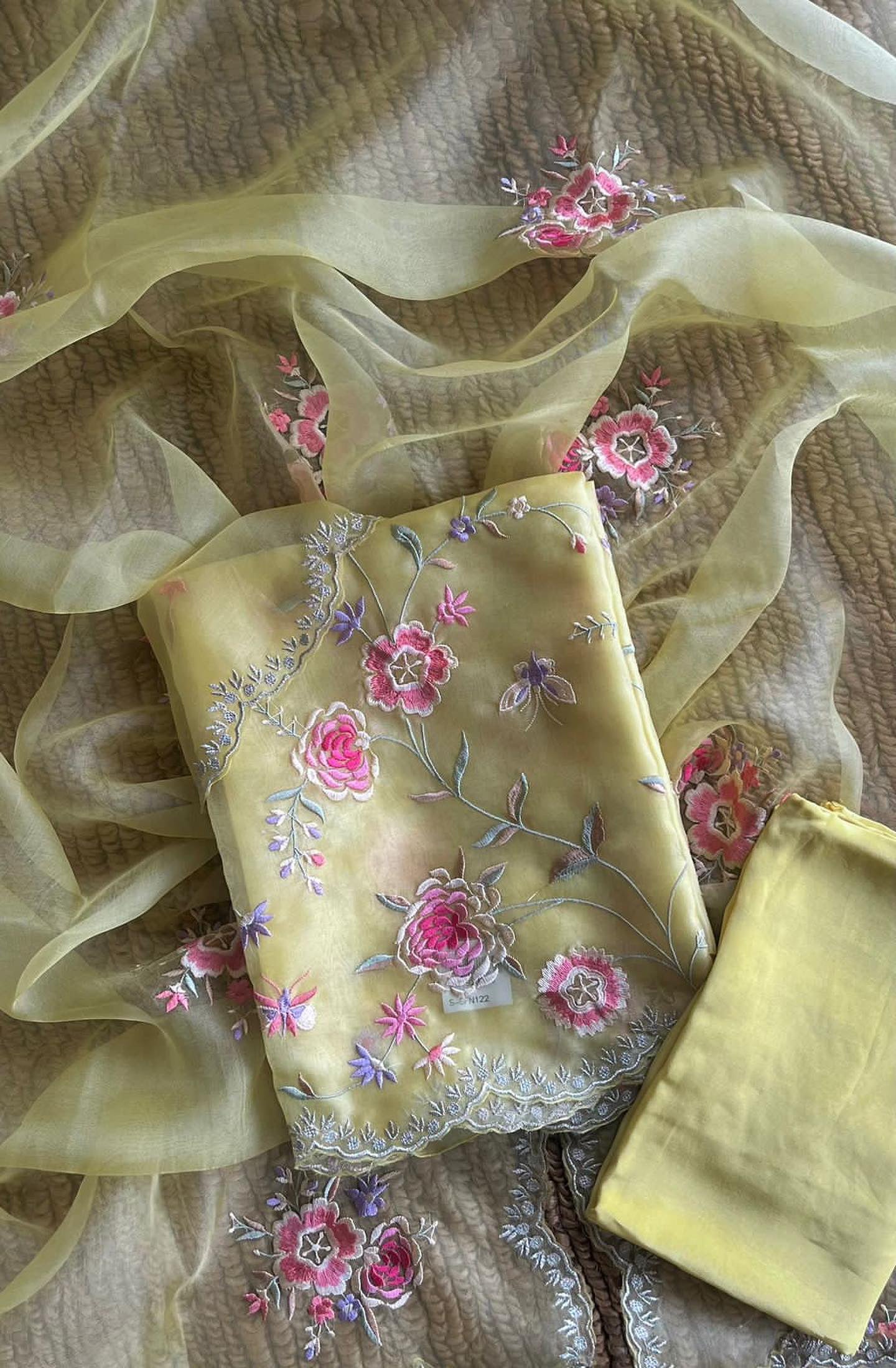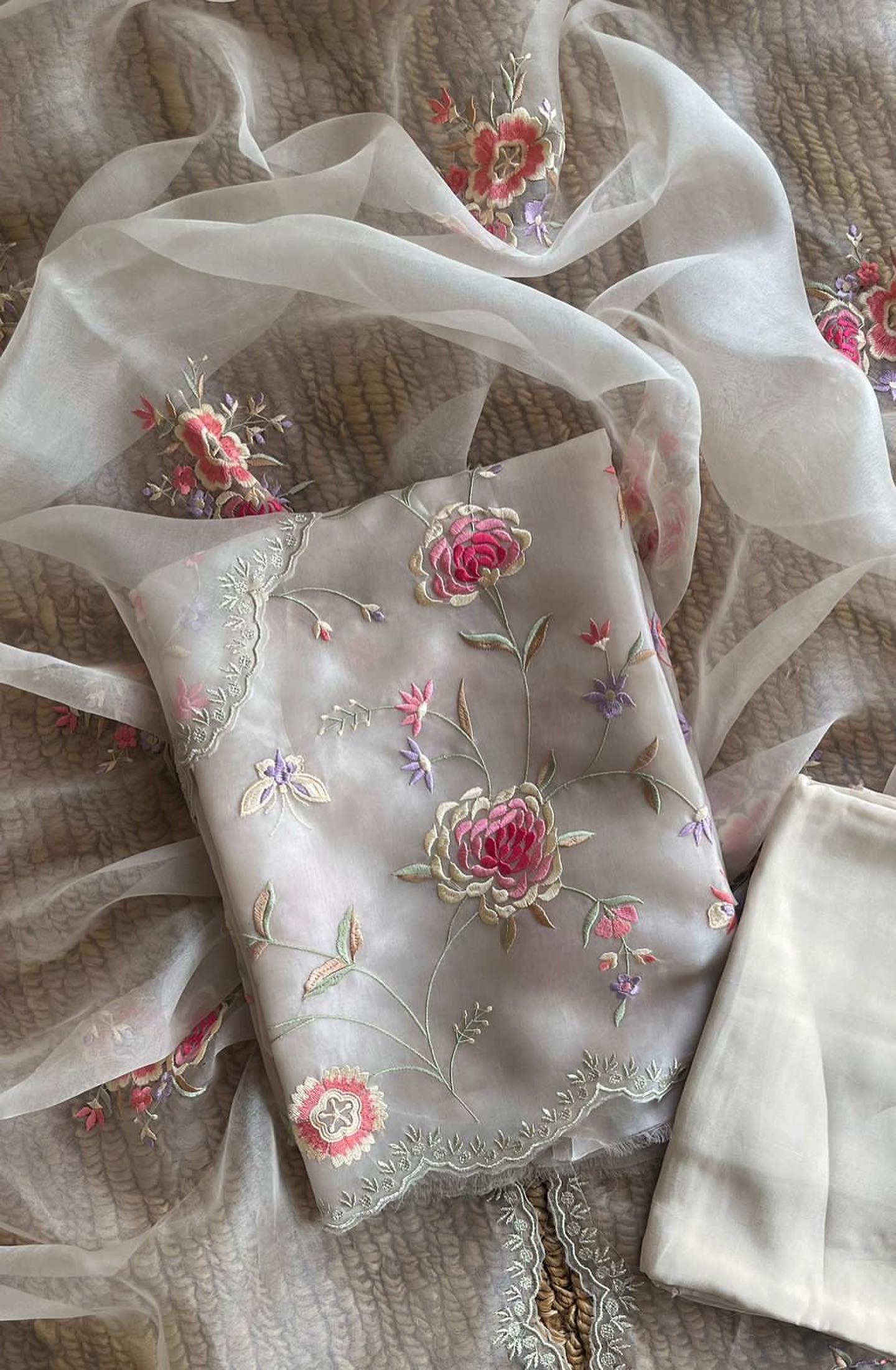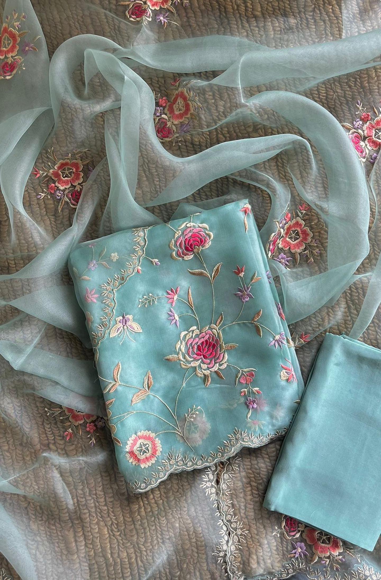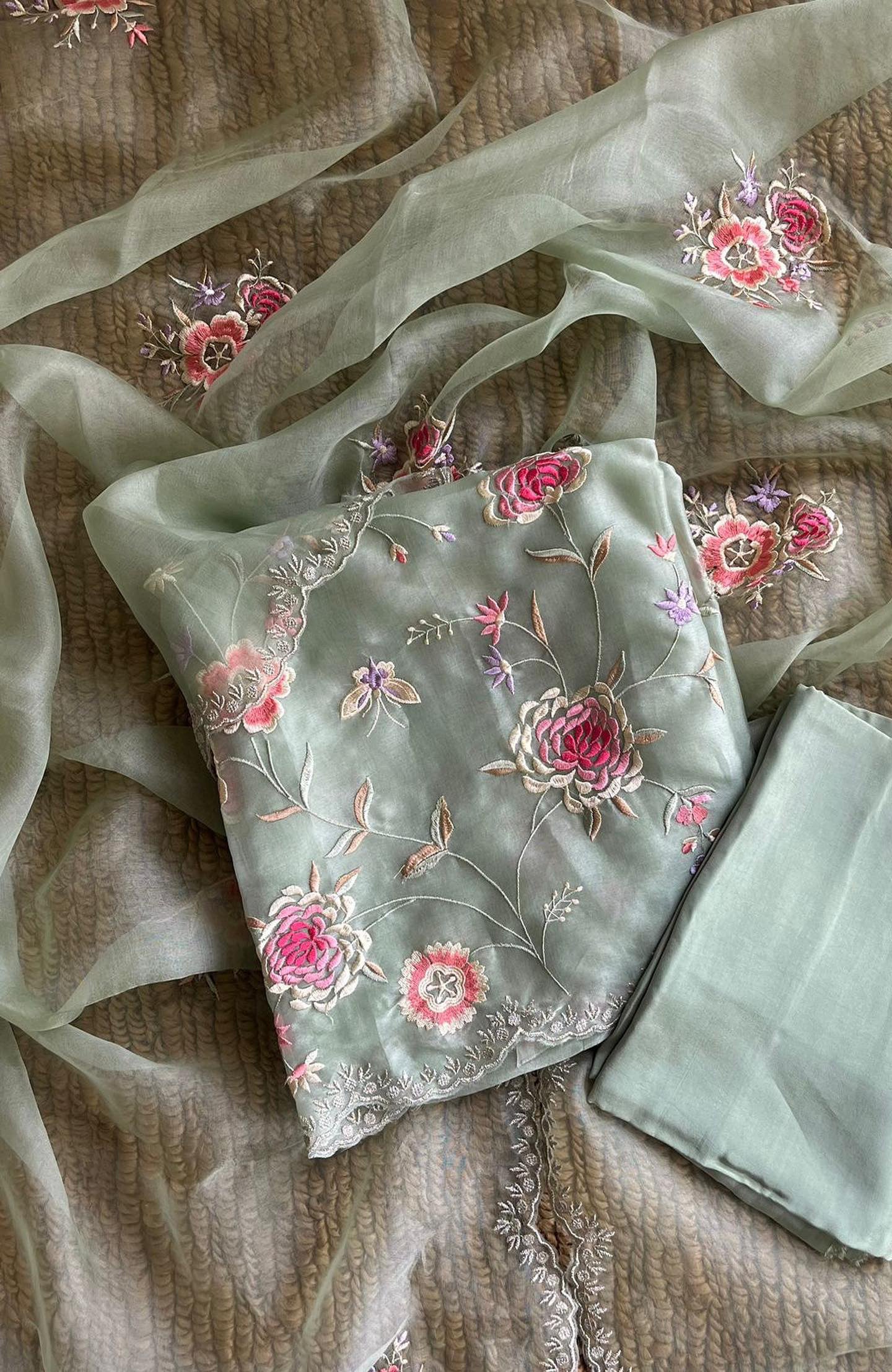 • Dupatta: Pure SILK Organza Dupatta/All Over Parsi Gara embroidered Jaal/ 2.5Mts