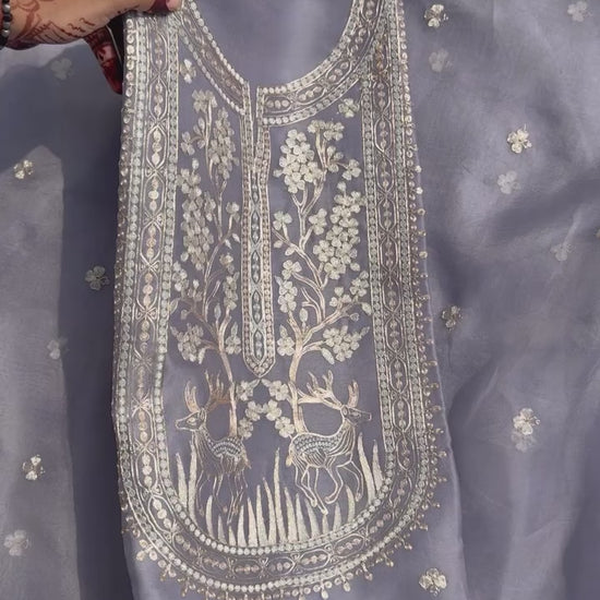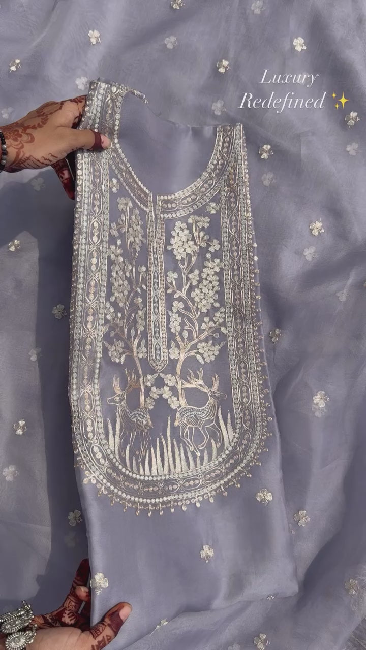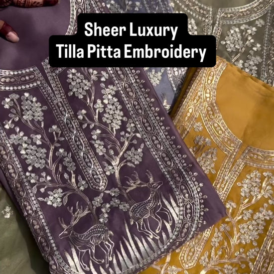 Atharva Heritage Sheer Luxury Pure Silk Organza Kurta and Pure Silk Organza Dupatta Tilla Pitta Embroidered Suit SOTPV181