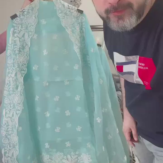 • Dupatta: Pure SILK Organza Dupatta French Thread Embroidery 2.5Mts