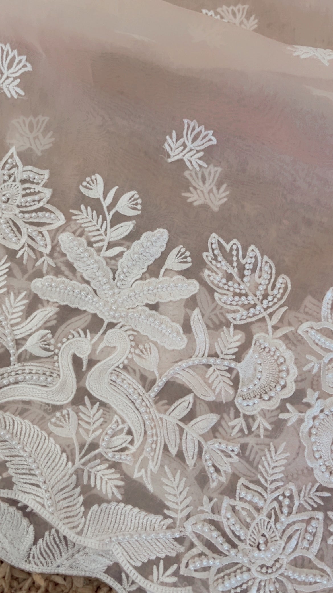 • Dupatta: Pure SILK Organza Dupatta French Thread Embroidery 2.5Mts
