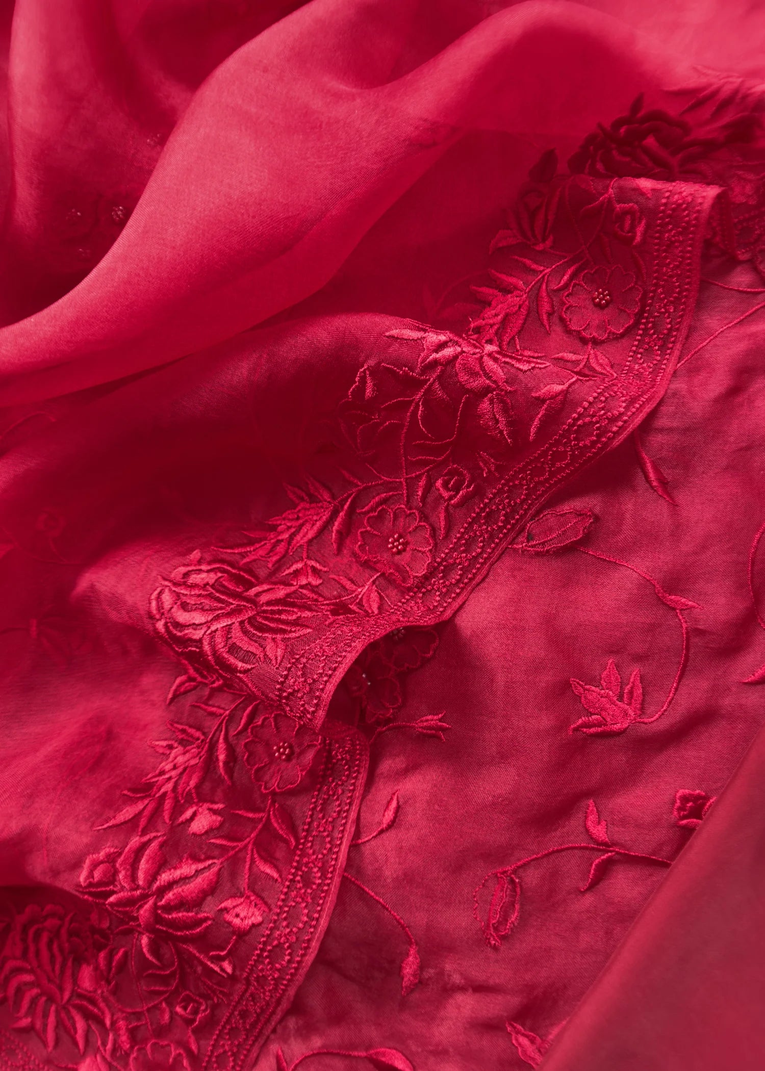 • Dupatta: Pure SILK Organza Dupatta French Thread Embroidery 2.5Mts