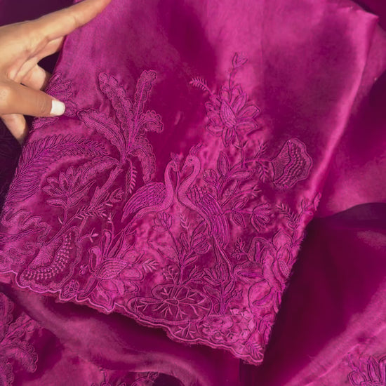 Atharva Heritage SHEER LUXURY Pure Silk Organza Plum Color French Thread Front and Back Embroidered with Separate Embroidered Sleeves SOFTHP569