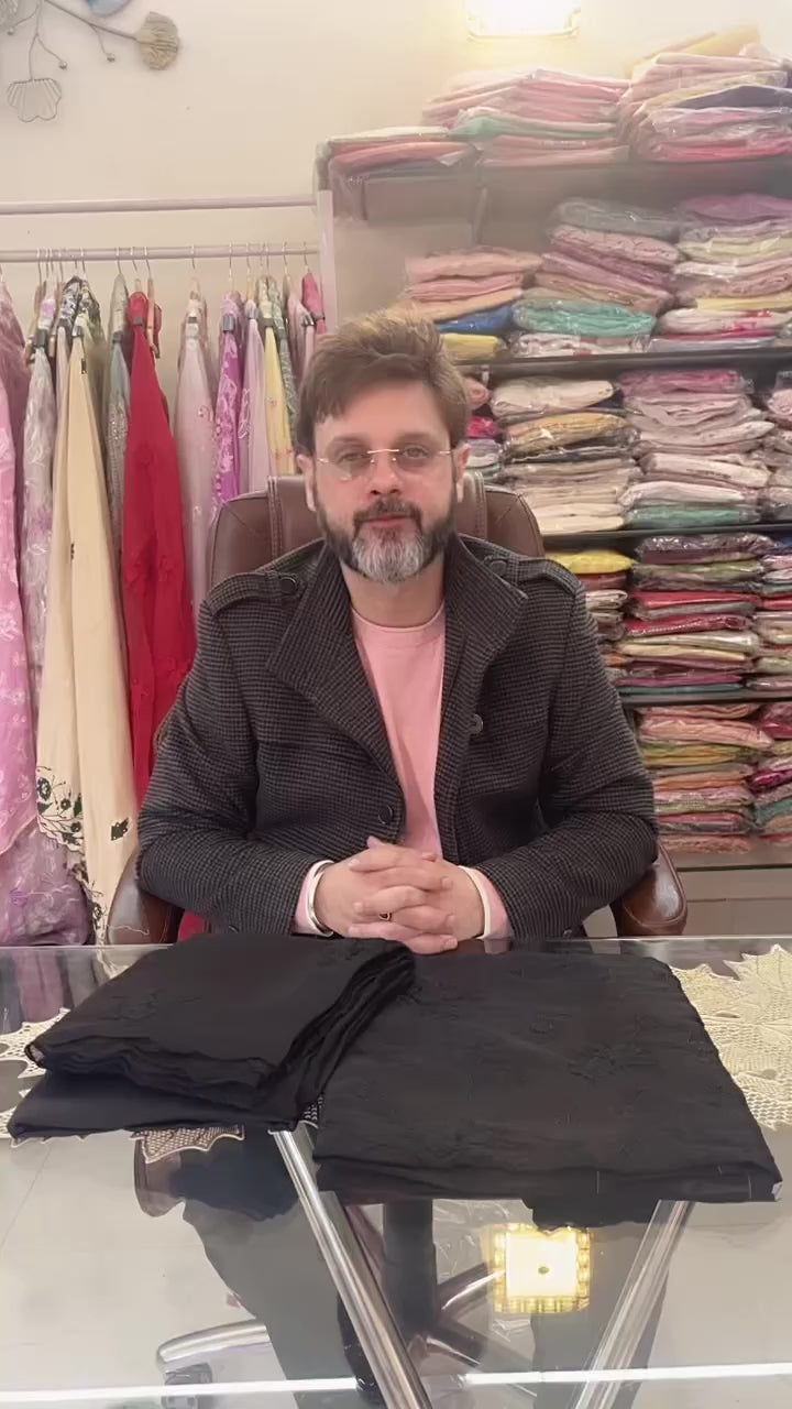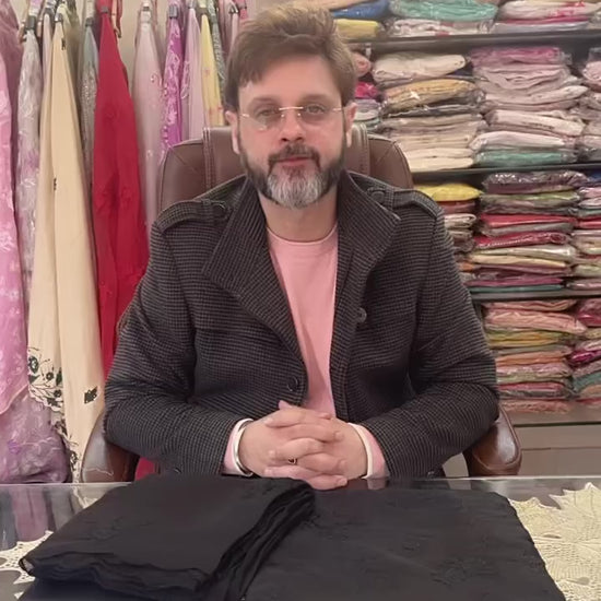 Atharva Heritage Sheer Luxury Pure silk Organza PARSI GARA SUIT SHEER00876 Black