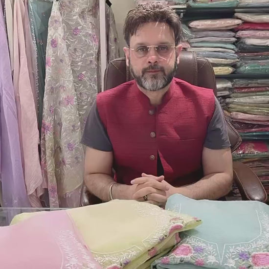 • Dupatta: Pure Mul Chanderi Dupatta/All Over Parsi Gara embroidered Jaal/ 2.5Mts