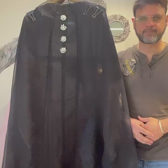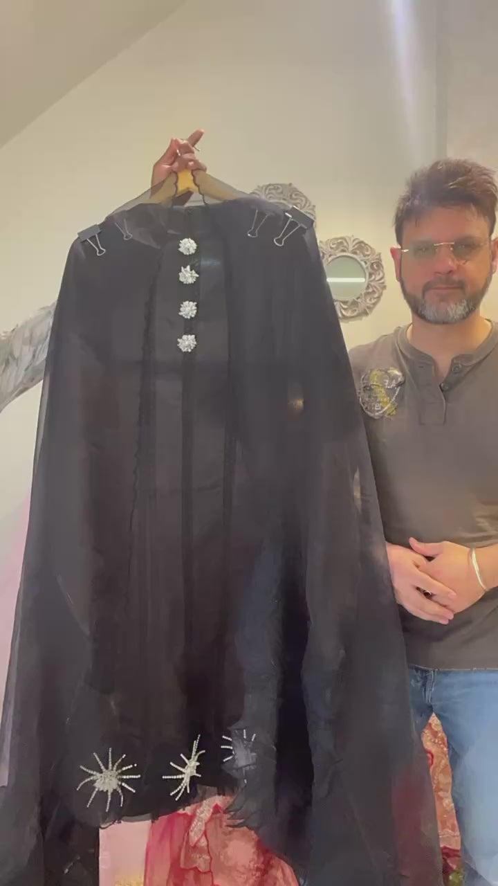 Pakistani Black Pure Silk Organza Suit with Hand Applique & 3D Pearl Embroidery