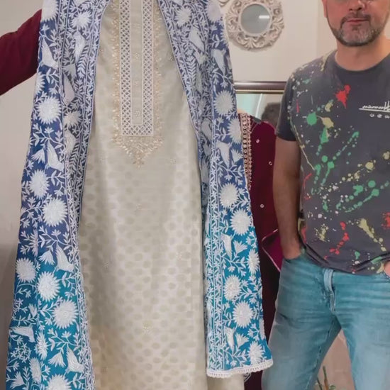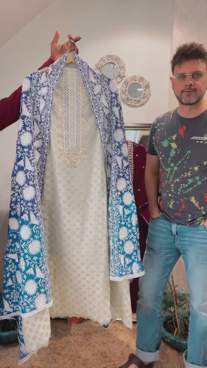Kurta :- Unstitched Self Silk Kurta with Hand embroidered Yolk 2.5Mts