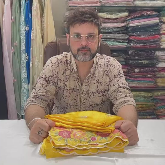 Lightweight, sheer, and luxurious — silk organza lends a graceful flow to both silhouettes, while the intricate embroidery brings traditional charm with modern finesse.