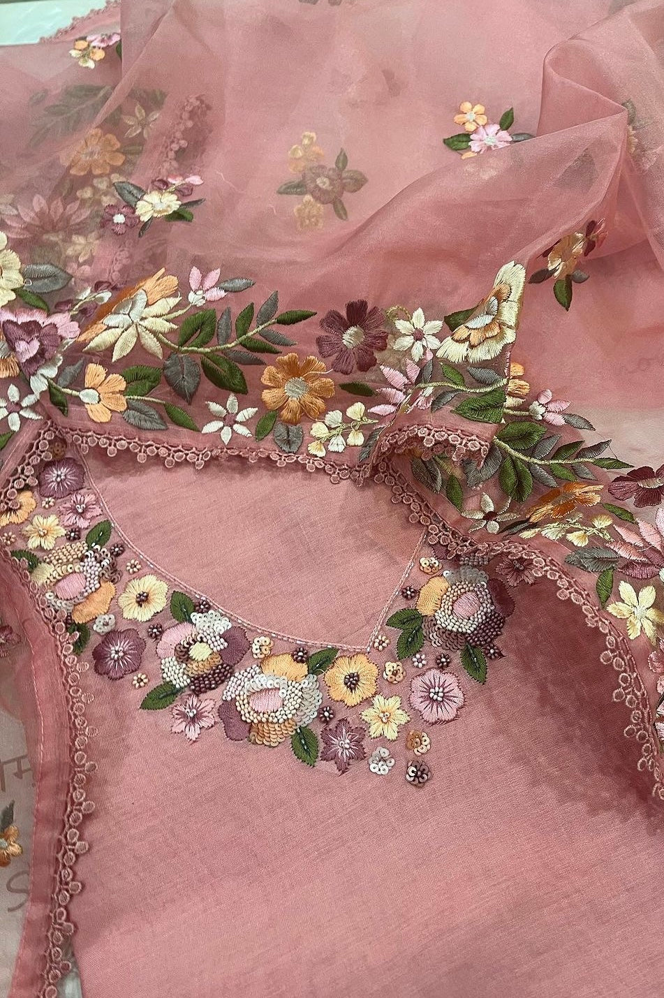 • Dupatta: Pure SOFT Organza Dupatta Full embroidered with 2 side Parsi Embroidered border 2.5 Mts