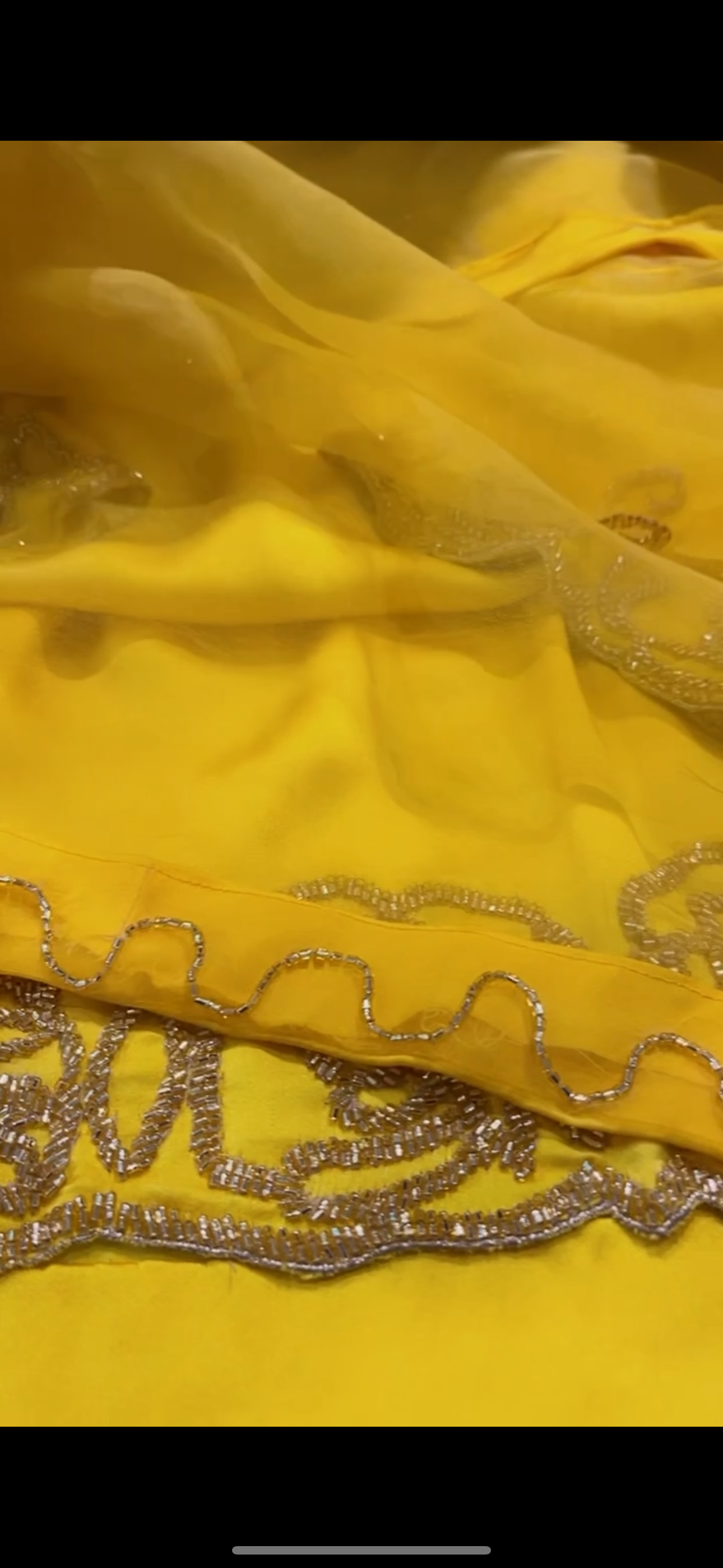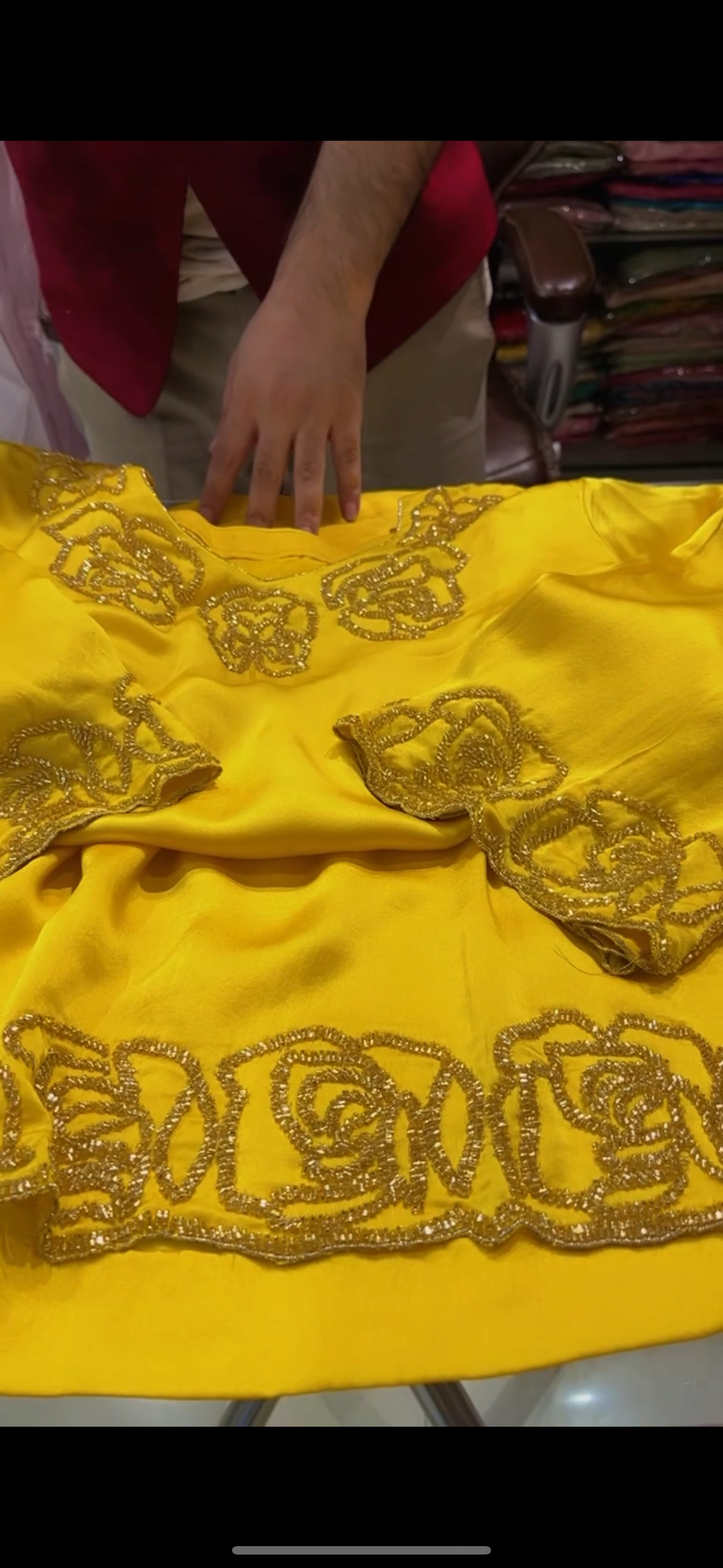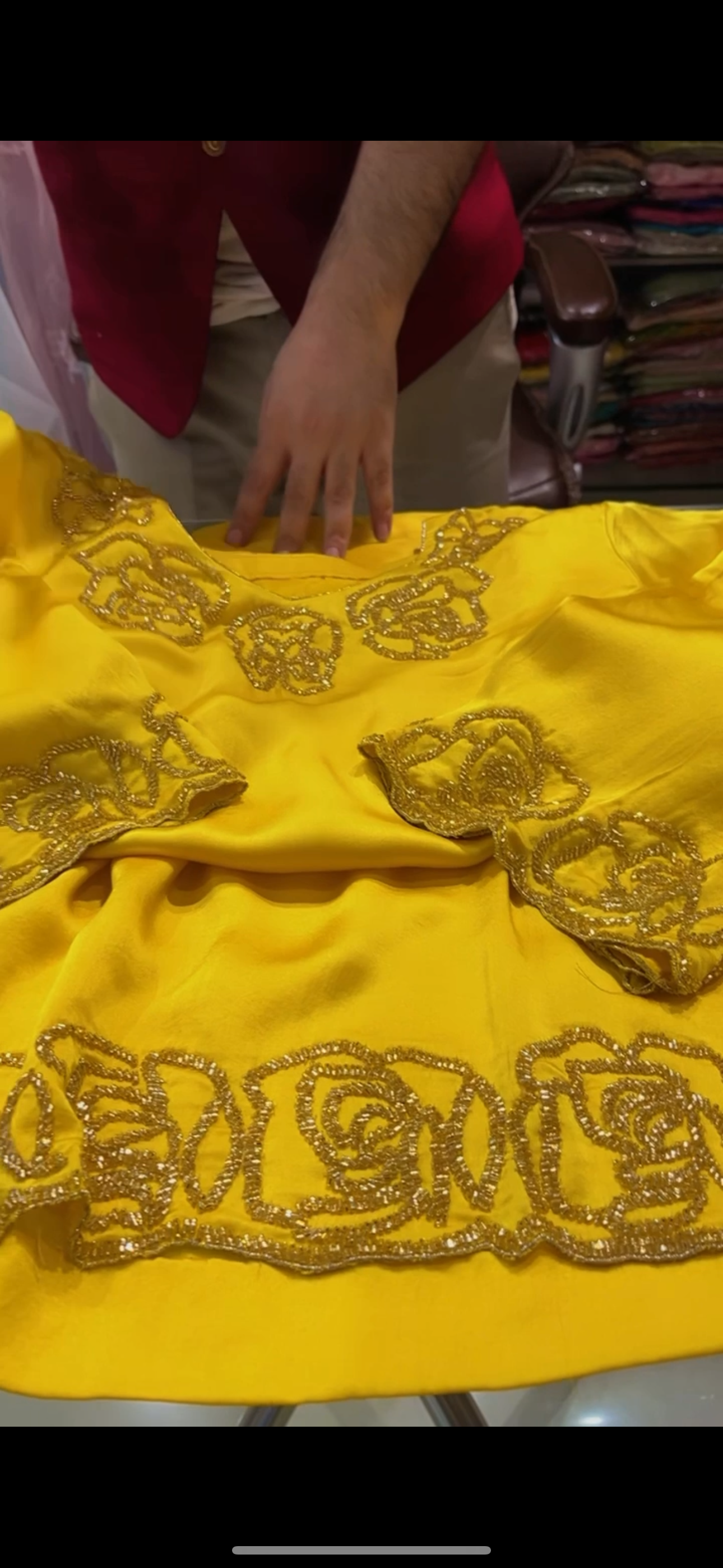 The look is completed with a Pure Silk Organza dupatta, finished with a delicate four-side border, and paired with Pure Crepe Silk pants (30β38 inches, customizable) for a seamless, graceful silhouette.