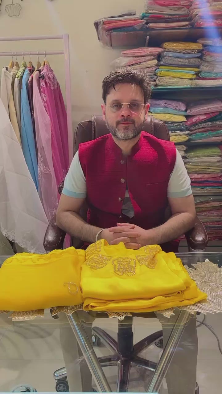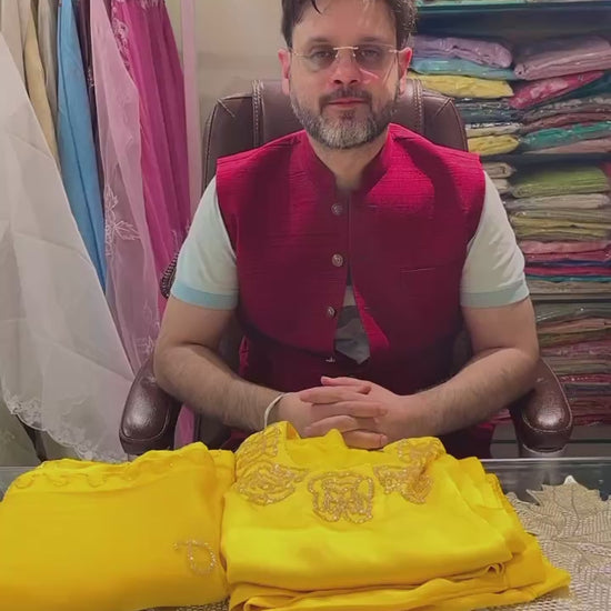 Elegance meets craftsmanship in this Pure Silk (80 grams) kurta set, designed for women who appreciate true luxury. The kurta is adorned with intricate handwork detailing on the yoke and ghera sleeves, a testament to the artistry of our skilled karigars. With a fully stitched length of up to 46 inches (customizable), it ensures both style and comfort tailored to your preference.