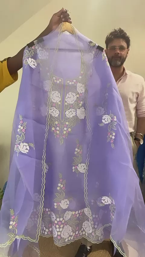 ATHARVA Hand Embroidery Salwar Kameez/Intricate French Knot Embroidered Work/ Pure Organza silk Shirt Dupatta/Custom Stitch Unstitch/Plazzo/Pant/Gift