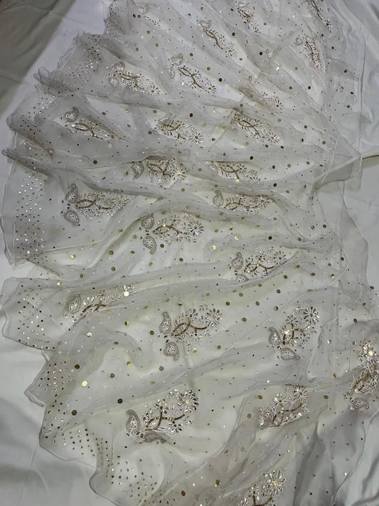 Indulge in sheer luxury with our silk organza collection, perfect for weddings and trousseaus. Each piece features beautiful fabric adorned with intricate designer embroidery, ensuring elegance and sophistication for your special day.
